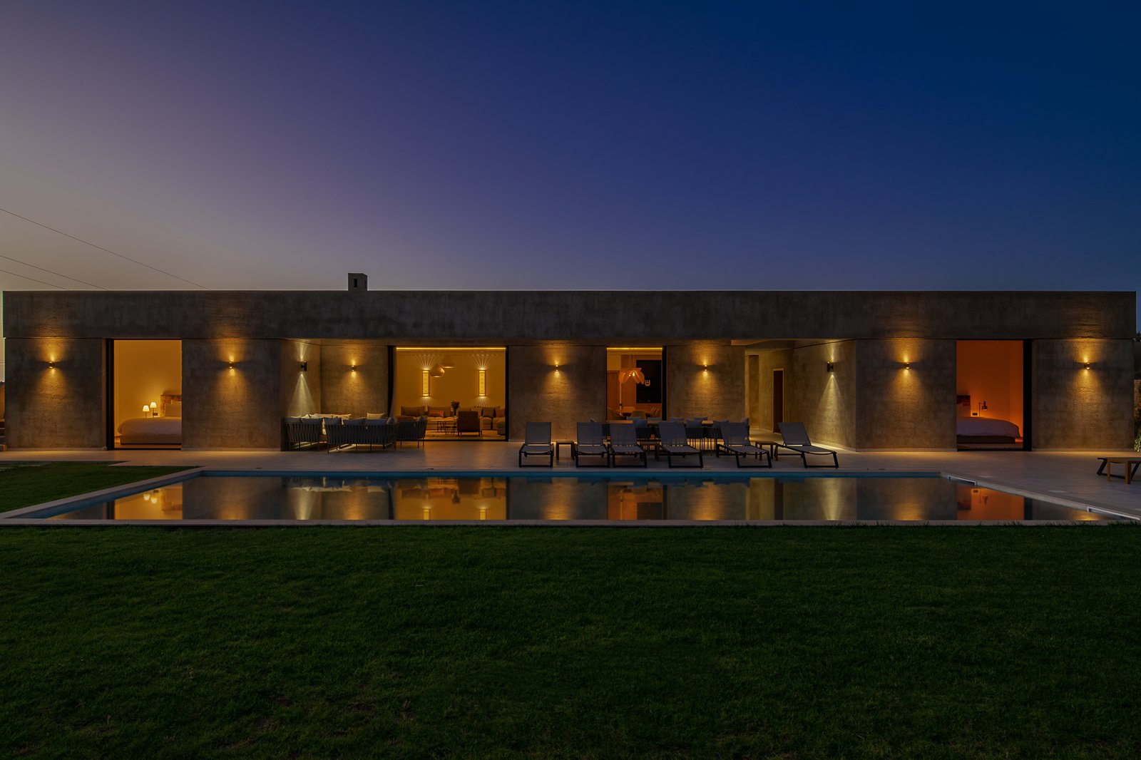 Construite en 2022 et organisée de plain-pied, la villa propose 5 chambres avec 5 salles de bain, une configuration parfaite pour un séjour en famille ou entre amis où chacun conserve son intimité. Les espaces ont été pensés pour une vie simple et agréable : de beaux volumes, une circulation fluide et une lumière naturelle présente tout au long de la journée.