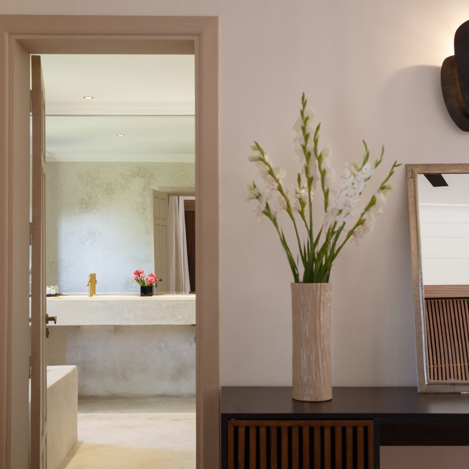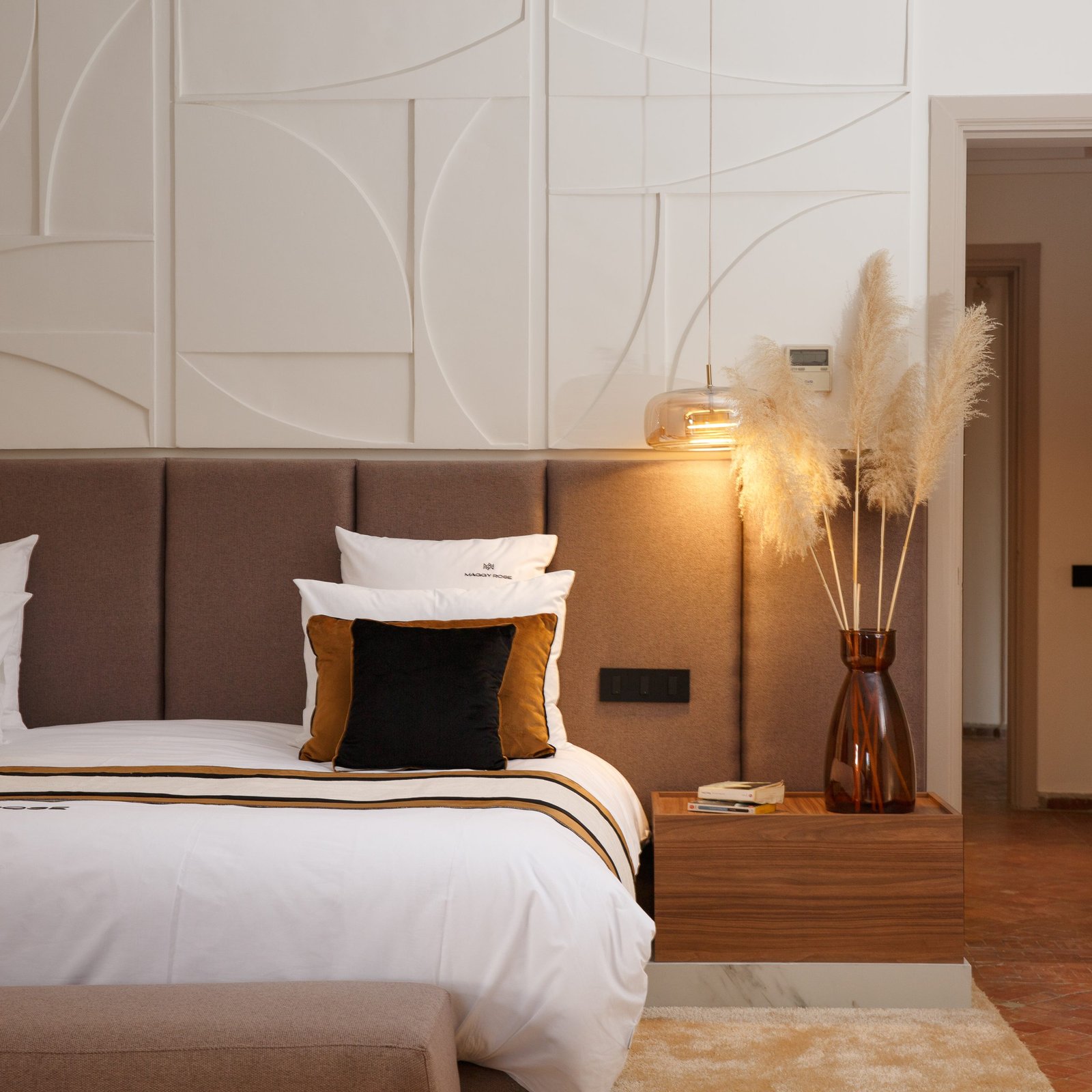 La villa peut accueillir jusqu’à 16 personnes avec 8 chambres et 8 salles de bain. L’un de ses vrais atouts, surtout pour les groupes, est la modularité des couchages : les lits king-size peuvent être installés en configuration twin, ce qui facilite la répartition des chambres selon la composition du groupe.